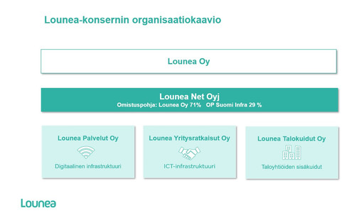 Sijoituksen jälkeen OP Suomi Infra omistaa noin 29 % Lounea Net Oyj:stä. Lounea-konsernin emoyhtiö Lounea Oy säilyy yhtiön suurimpana omistajana noin 71 %:n osuudella. Lounea-konsernin operatiiviset liiketoimintayhtiöt Lounea Palvelut Oy ja Lounea Yritysratkaisut Oy ovat osa Lounea Net Oyj:tä.