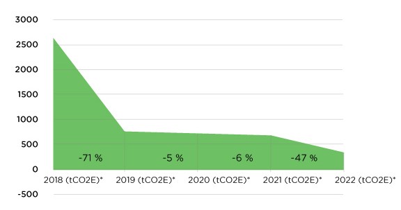 Lounea scope 1 ja 2 kehitys vuosina 2018 - 2022