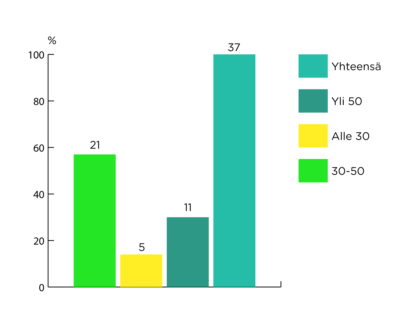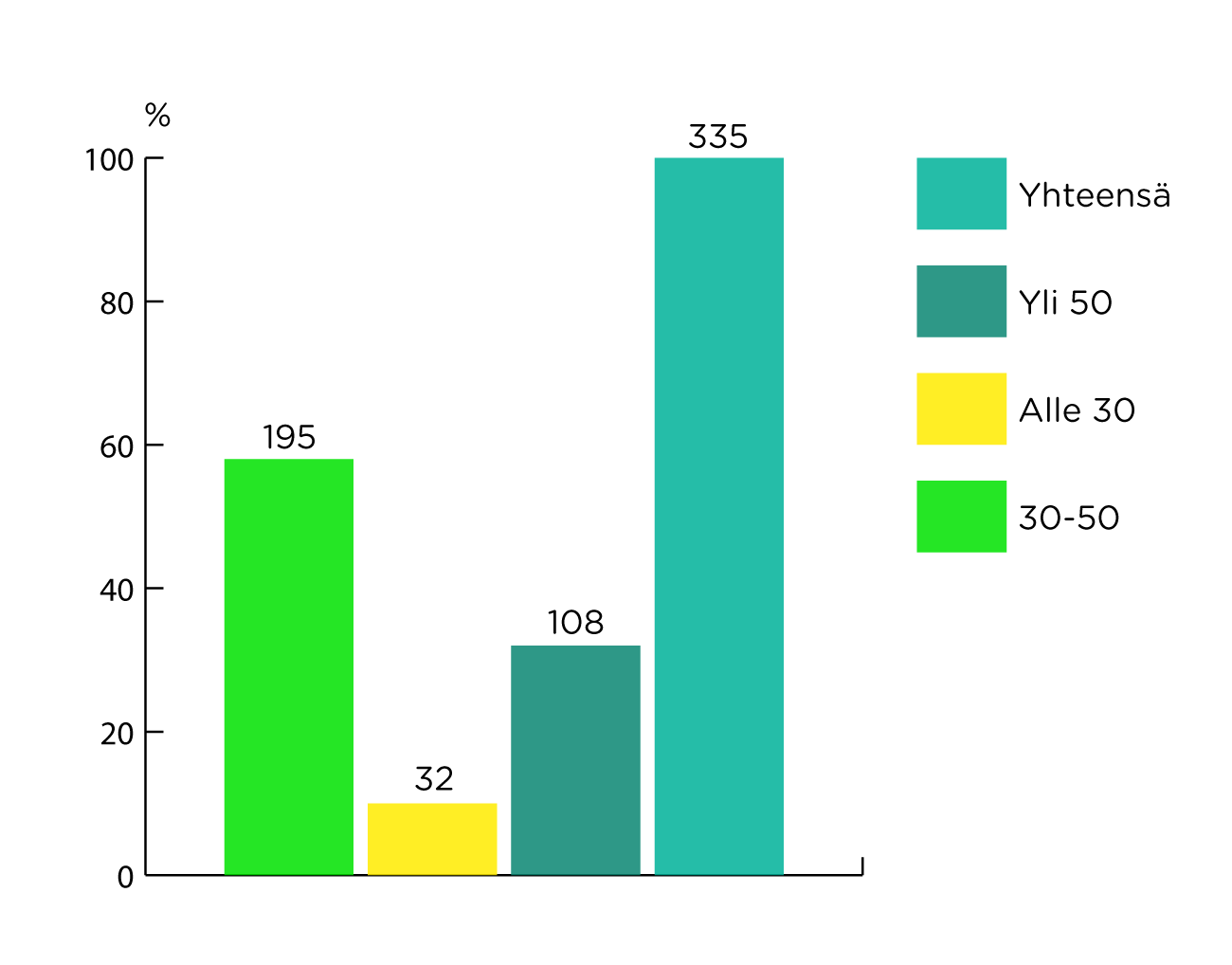 Uudet rekrytoidut työntekijät ikärakenne 30, 30-50, yli 50