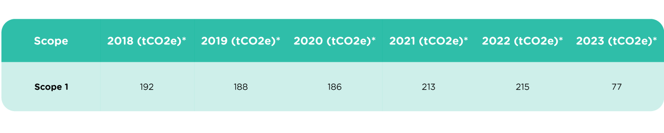 Oman toiminnan päästöt, kehitys (Scope 1 ja 2) vuodet 2018-2023