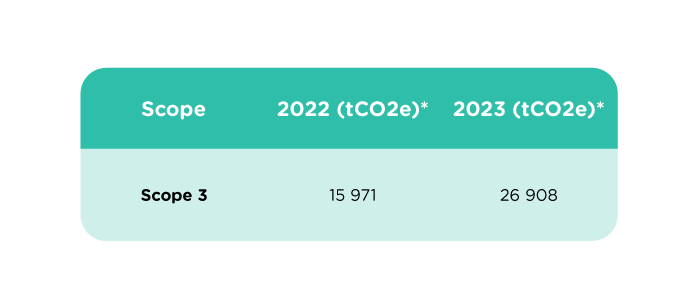 Scope 3 päästöt kasvoivat vuonna 2023 vuodesta 2022. Kasvun keskeiset syyt olivat verkkoinvestointien merkittävä kasvu sekä laskennan tarkentuminen. Teimme ensimmäisen scope 3 laskennan vuonna 2022.
